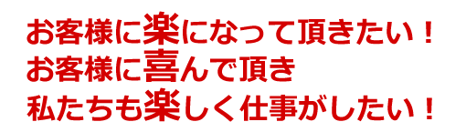そんな当り前な事にいつも真面目に取り組みます。世の中の変革に合わせて思い立ったらすぐ行動ができる、常に前進する仲間同士、思いやりをもって協力しあい、常に最高のサービスをお客様に提供し続けたい。